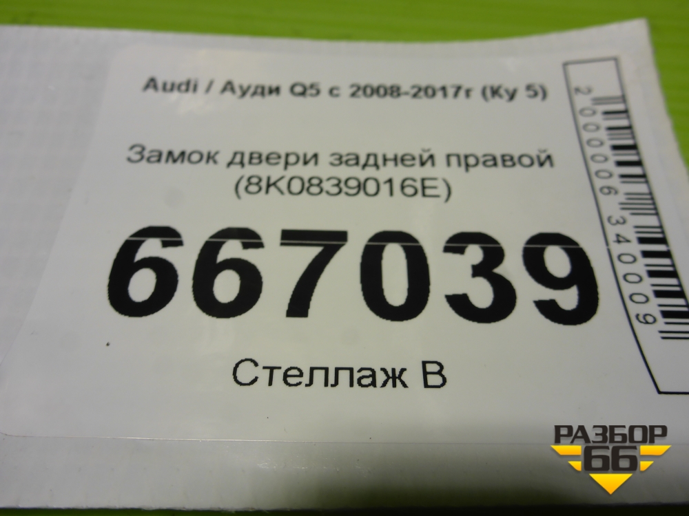 Замок двери задней правой (8K0839016E) для Audi Q5 c 2008-2017г (Ку 5) в Челябинске
