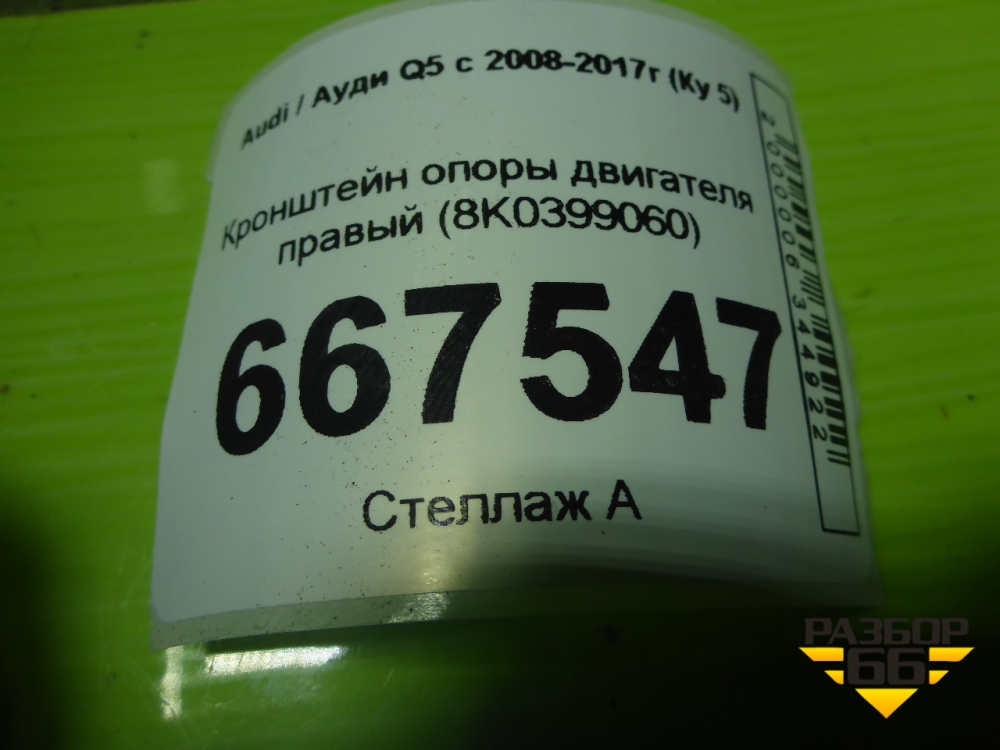 Кронштейн опоры двигателя правый (8K0399060) для Audi Q5 c 2008-2017г (Ку 5) в Челябинске