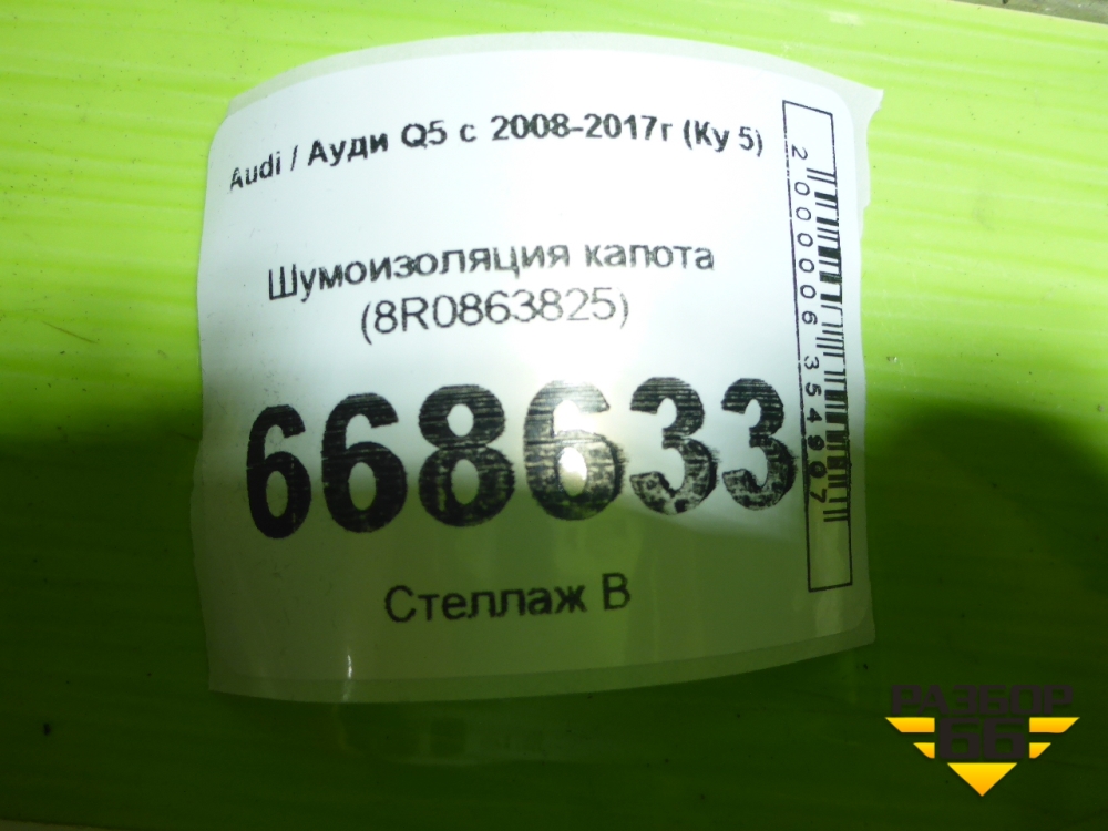 Шумоизоляция капота (8R0863825) для Audi Q5 c 2008-2017г (Ку 5) в Челябинске