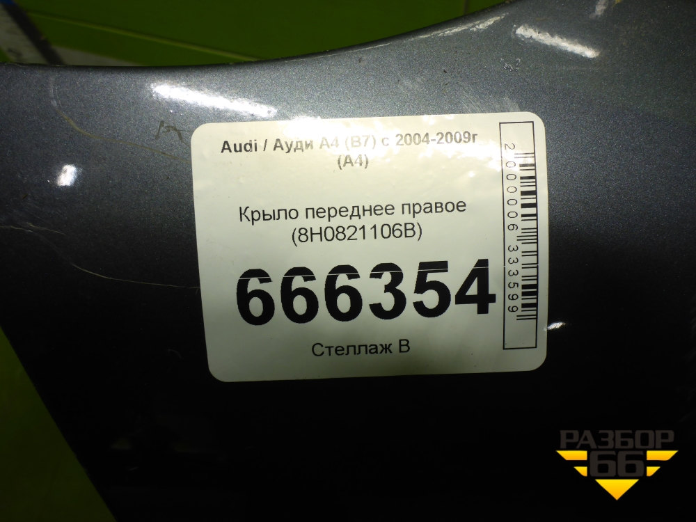 Крыло переднее правое (8H0821106B) для Audi A4 (В7) с 2004-2009г (А4) в Челябинске