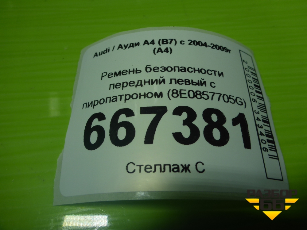 Ремень безопасности передний левый с пиропатроном (8E0857705G) для Audi A4 (В7) с 2004-2009г (А4) в Челябинске