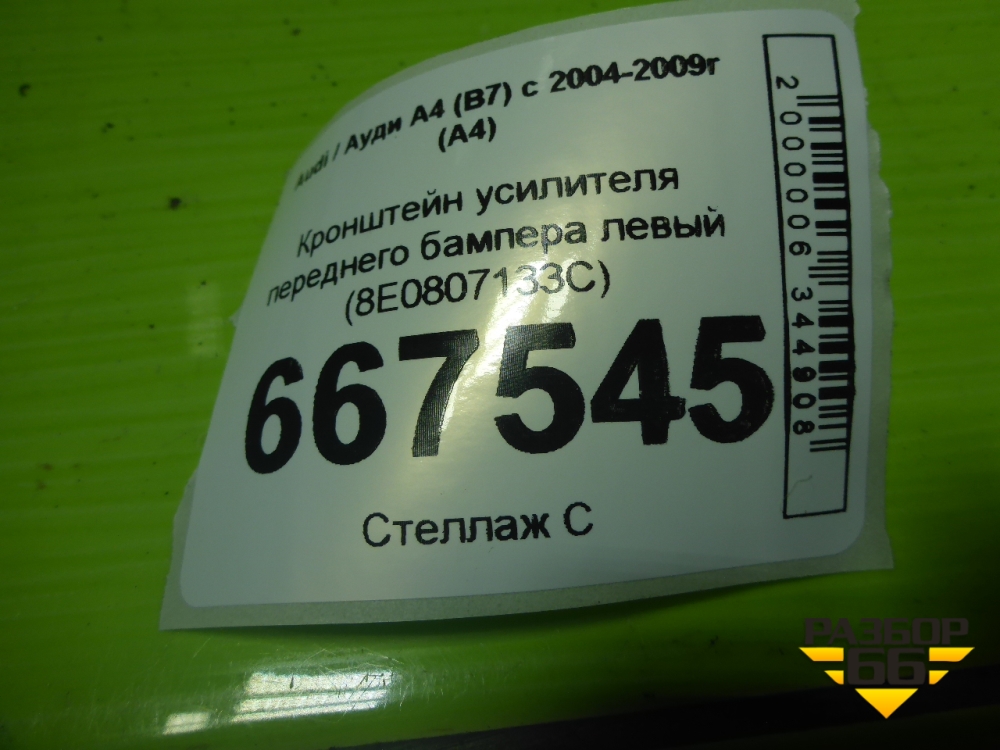 Кронштейн усилителя переднего бампера левый (8E0807133C) для Audi A4 (В7) с 2004-2009г (А4) в Челябинске