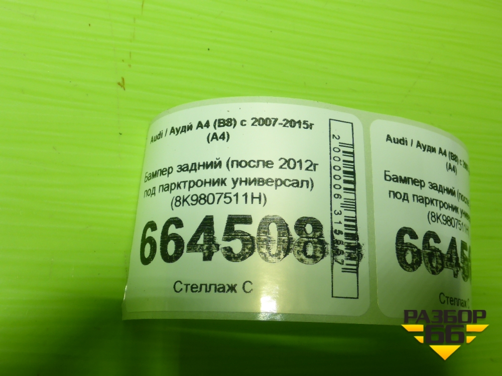 Бампер задний (после 2012г под парктроник универсал) (8K9807511H) для Audi A4 (В8) с 2007-2015г (А4) в Челябинске