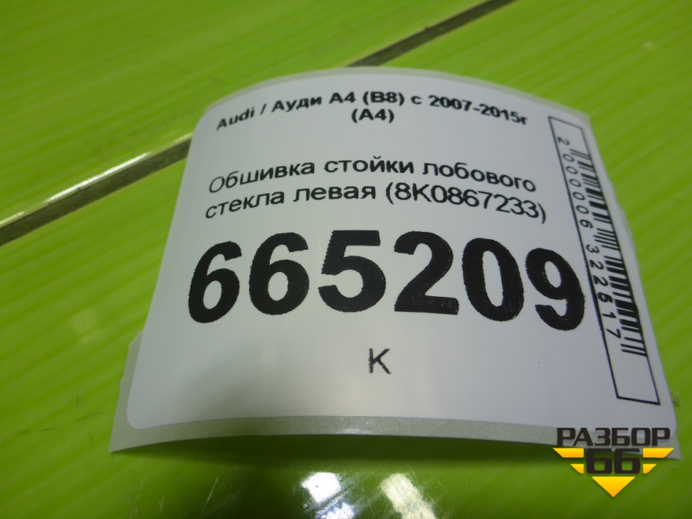 Обшивка стойки лобового стекла левая (8K0867233) для Audi A4 (В8) с 2007-2015г (А4) в Челябинске