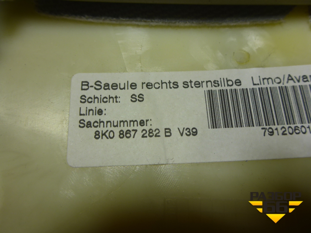 Обшивка стойки центральная верхняя правая (8K0867282B) для Audi A4 (В8) с 2007-2015г (А4) в Челябинске