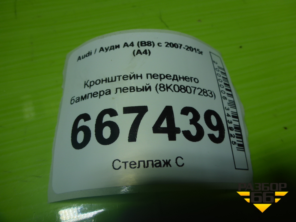 Кронштейн переднего бампера левый (8K0807283) для Audi A4 (В8) с 2007-2015г (А4) в Челябинске