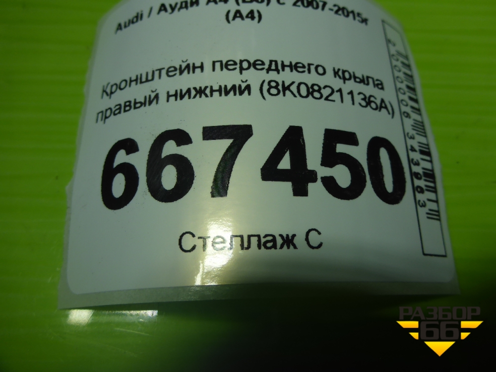 Кронштейн переднего крыла правый нижний (8K0821136A) для Audi A4 (В8) с 2007-2015г (А4) в Челябинске