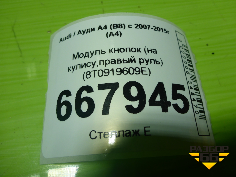 Модуль кнопок (на кулису,правый руль) (8T0919609E) для Audi A4 (В8) с 2007-2015г (А4) в Челябинске