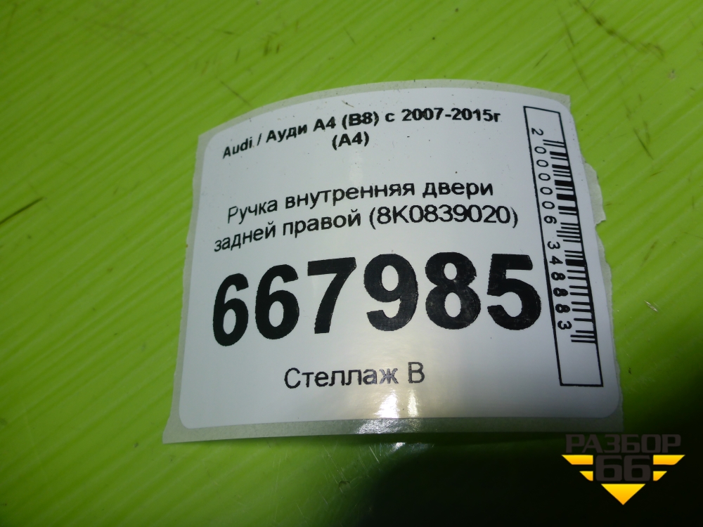 Ручка внутренняя двери задней правой (8K0839020) для Audi A4 (В8) с 2007-2015г (А4) в Челябинске
