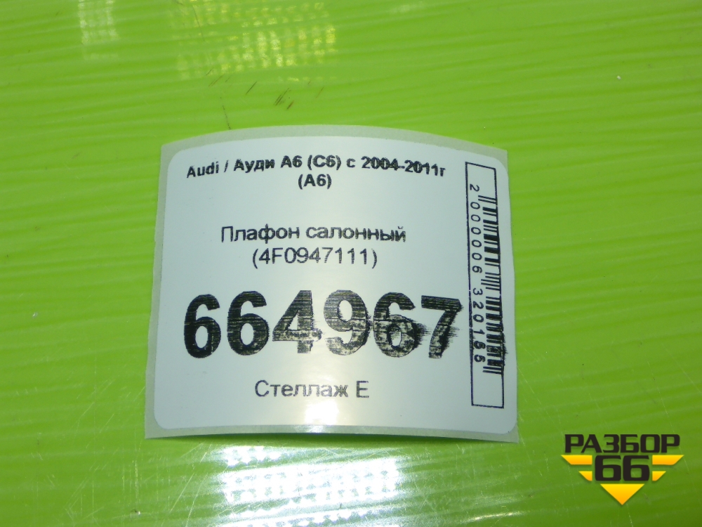 Плафон салонный (4F0947111) для Audi A6 (C6) с 2004-2011г (А6) в Челябинске