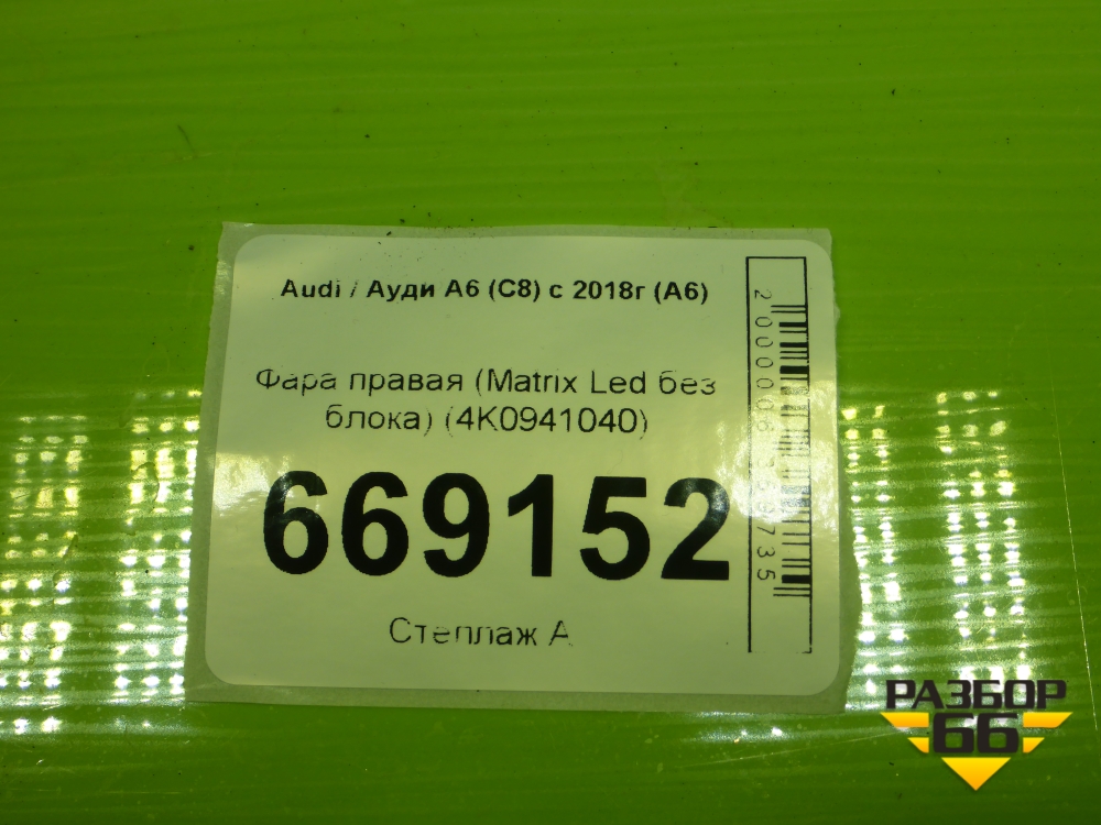 Фара правая (Matrix Led без блока) (4K0941040) для Audi A6 (C8) с 2018г (А6) в Челябинске