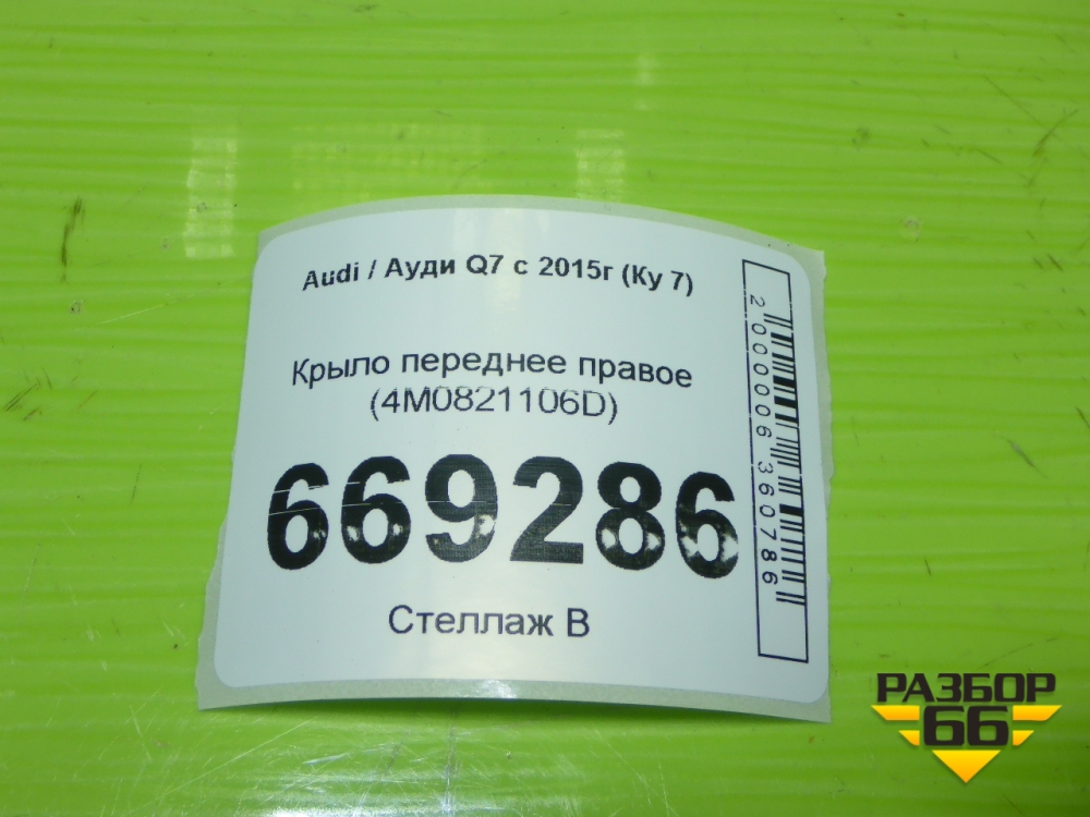 Крыло переднее правое (4M0821106D) для Audi Q7 c 2015г (Ку 7) в Челябинске