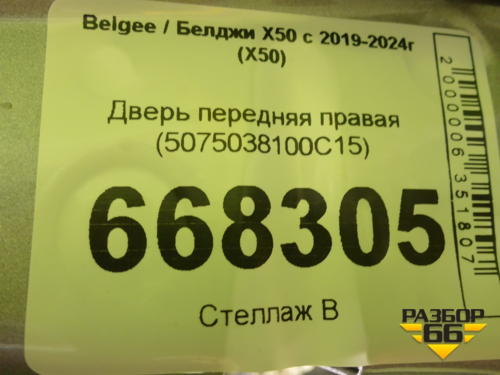 Дверь передняя правая (5075038100C15) для Belgee X50 с 2019-2024г (Х50) в Челябинске