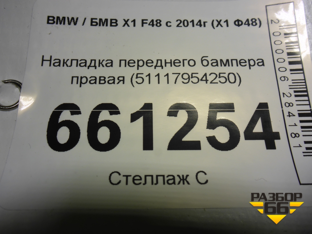 Накладка переднего бампера правая (51117954250) для BMW X1 F48 с 2014г (Х1 Ф48) в Челябинске