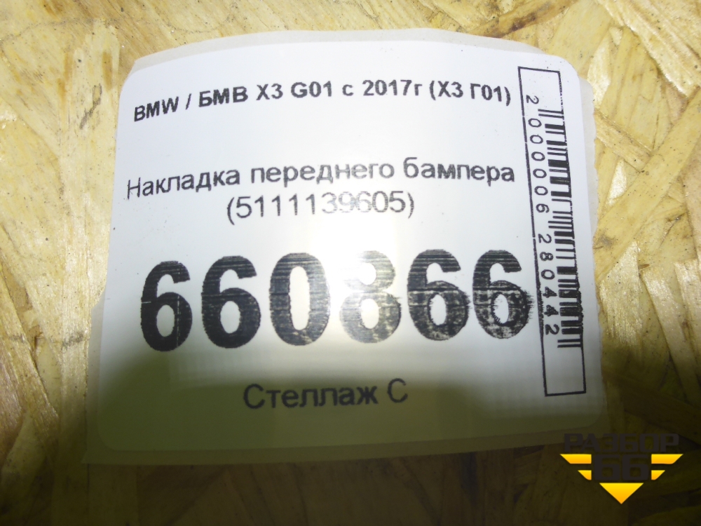 Накладка переднего бампера (5111139605) для BMW X3 G01 с 2017г (Х3 Г01) в Челябинске