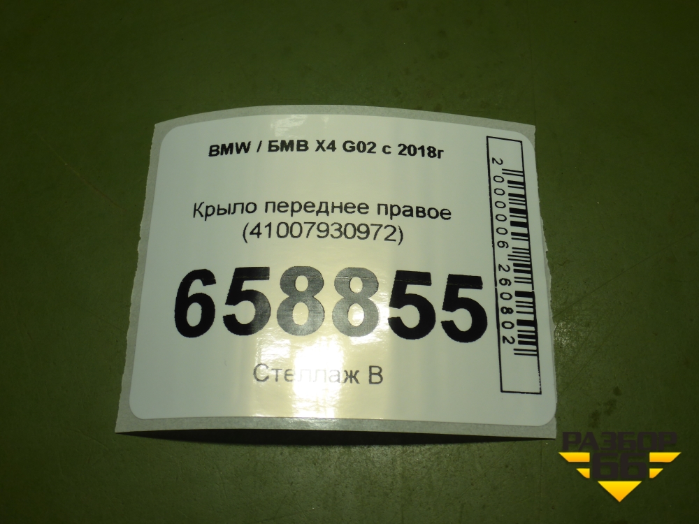 Крыло переднее правое (41007930972) для BMW X4 G02 с 2018г (Х4 Г02) в Челябинске