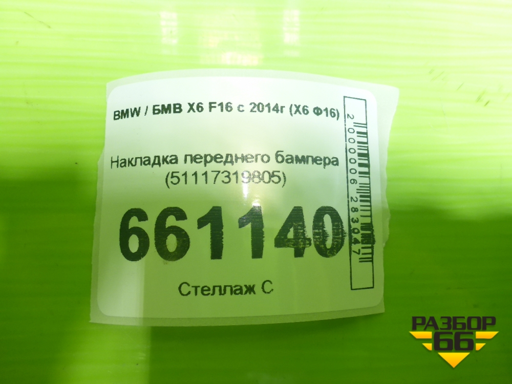 Накладка переднего бампера (51117319805) для BMW X6 F16 с 2014г (Х6 Ф16) в Челябинске