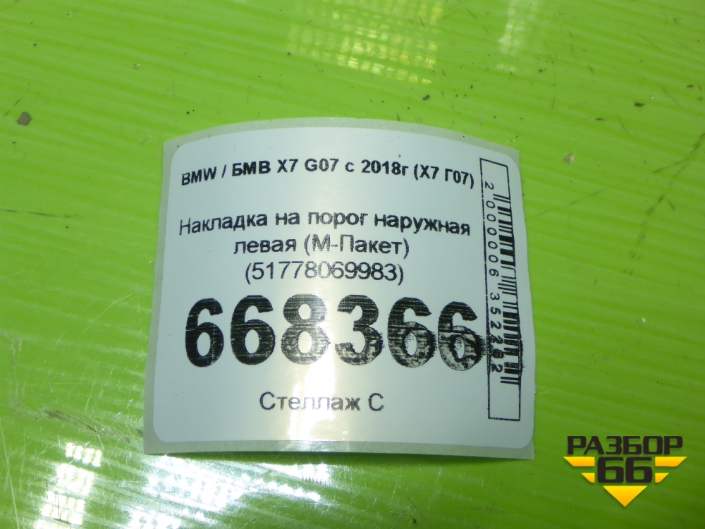 Накладка на порог наружная левая (М-Пакет) (51778069983) для BMW X7 G07 с 2018г (Х7 Г07) в Челябинске