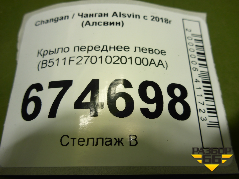 Крыло переднее левое (B511F2701020100AA) для Changan Alsvin с 2018г (Алсвин) в Челябинске