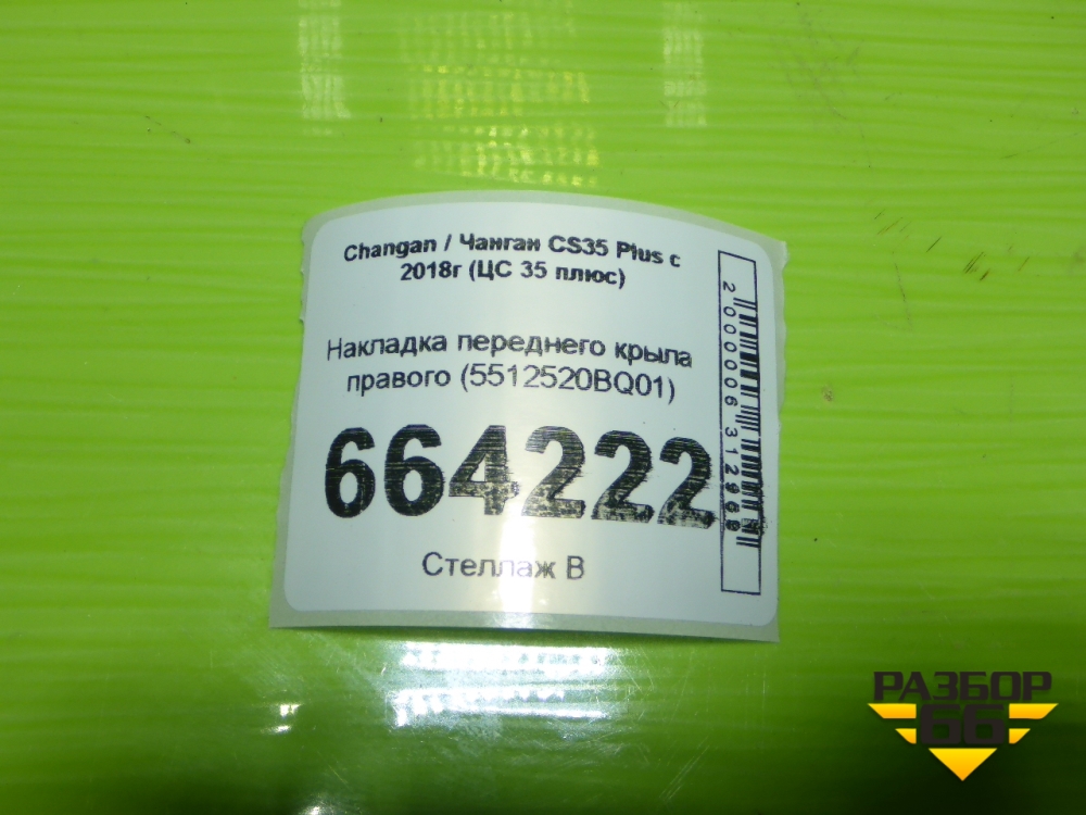 Накладка переднего крыла правого (5512520BQ01) для Changan CS35 Plus с 2018г (ЦС 35 плюс) в Челябинске