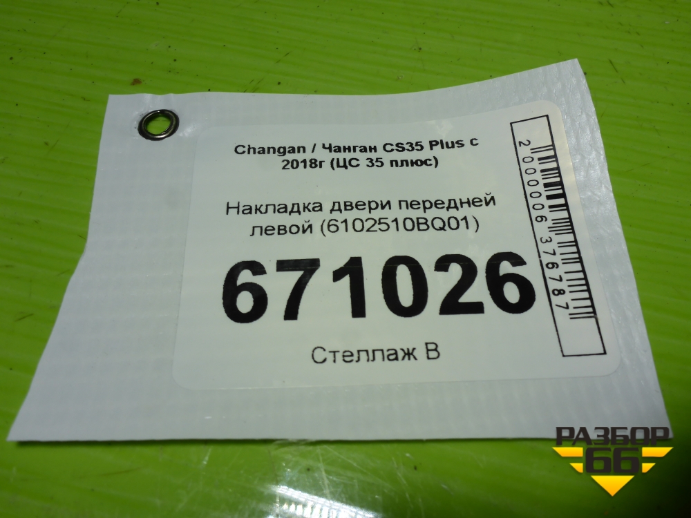 Накладка двери передней левой (6102510BQ01) для Changan CS35 Plus с 2018г (ЦС 35 плюс) в Челябинске