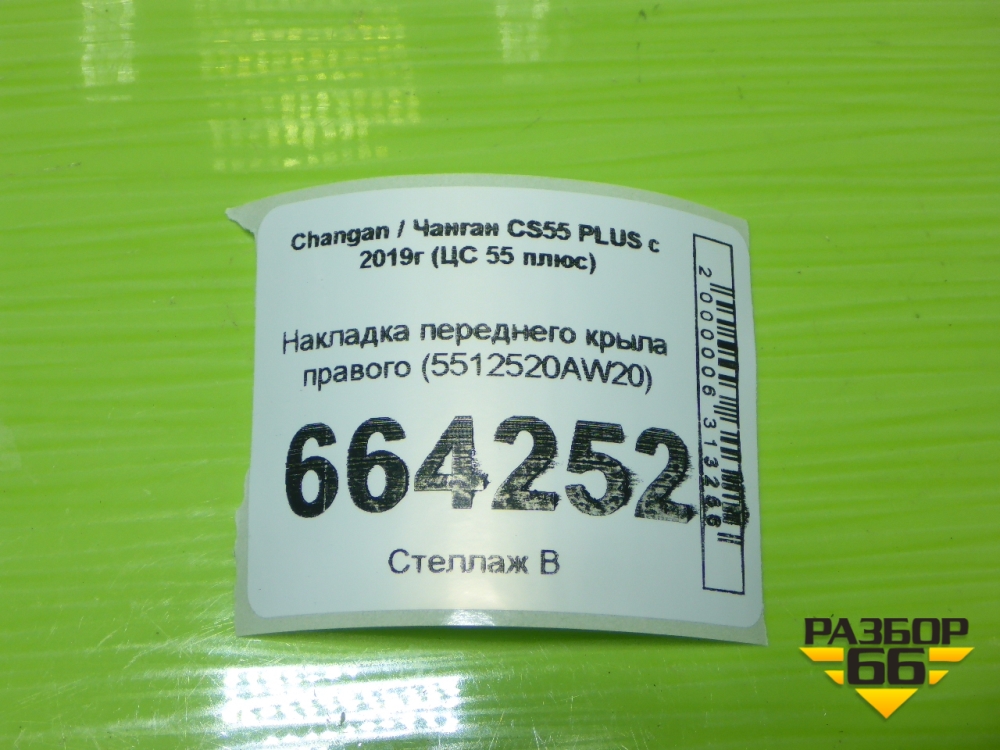 Накладка переднего крыла правого (5512520AW20) для Changan CS55 PLUS с 2019г (ЦС 55 плюс) в Челябинске
