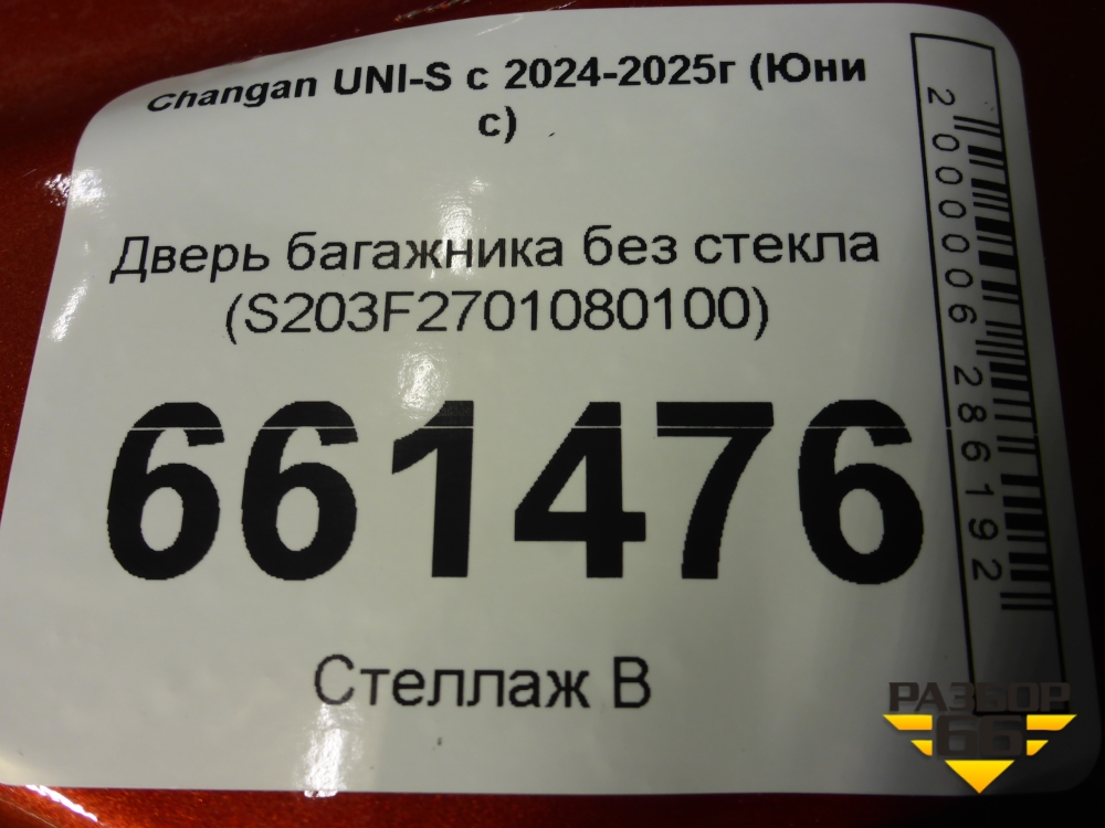 Дверь багажника без стекла (S203F2701080100) для Changan UNI-S с 2024-2025г (Юни с) в Челябинске