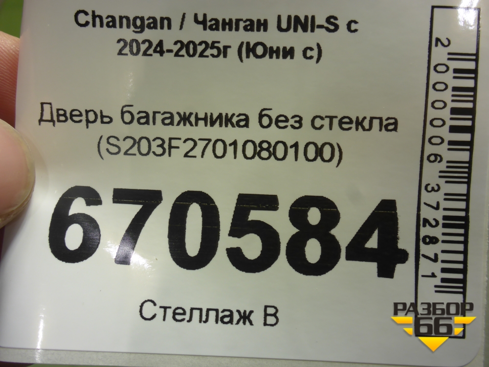 Дверь багажника без стекла (S203F2701080100) для Changan UNI-S с 2024-2025г (Юни с) в Челябинске