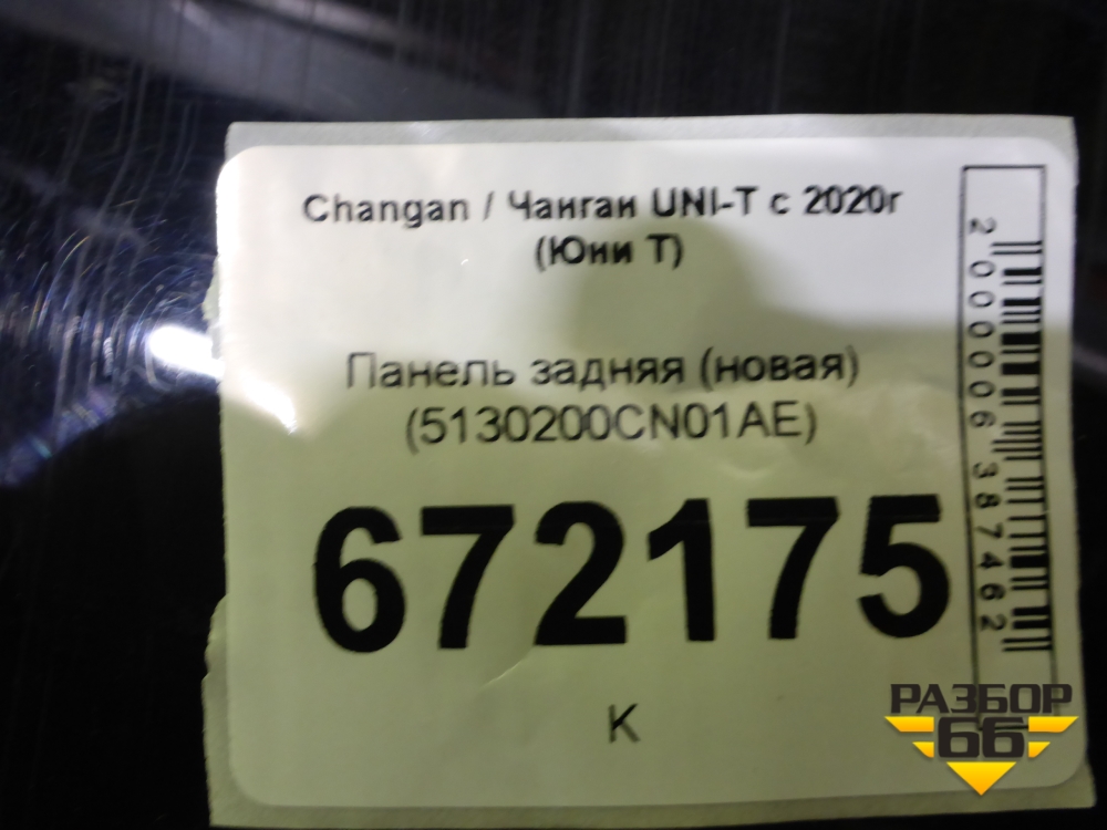Панель задняя (новая) (5130200CN01AE) для Changan UNI-T с 2020г (Юни Т) в Челябинске