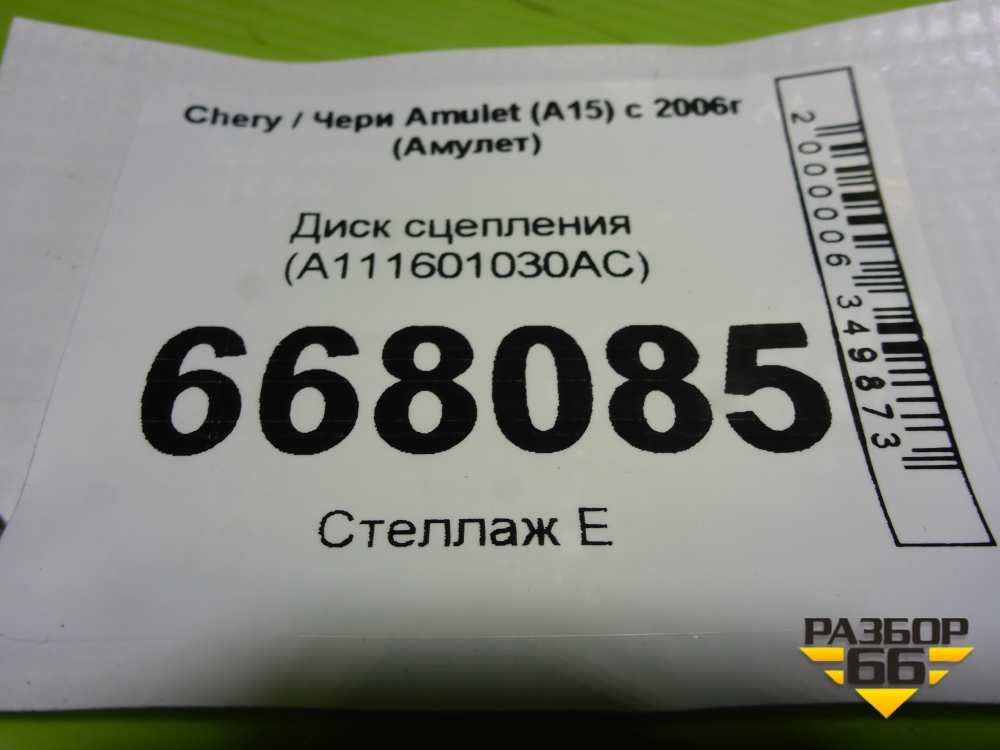 Диск сцепления (A111601030AC) для Chery Amulet (A15) с 2006г (Амулет) в Челябинске