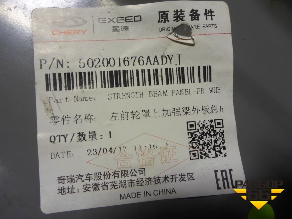 Кузовной элемент (панель переднего левого лонжерона) (502001676AADYJ) для Chery Arrizo 8 с 2022г (Арризо 8) в Челябинске