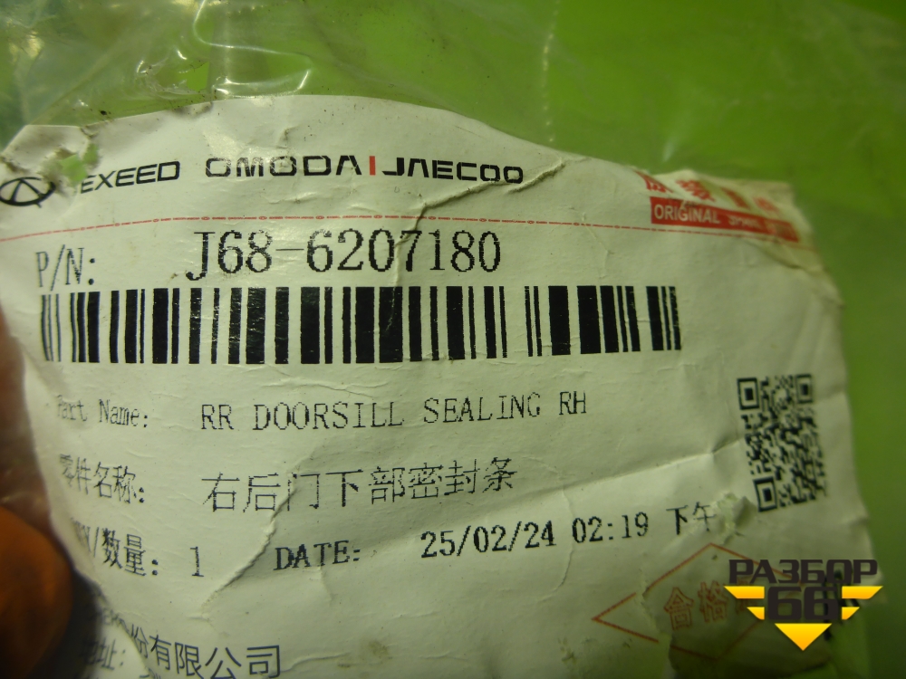 Уплотнитель двери передней левой (на кузов) (J686207180 554001482AA) для Chery Tiggo 4 Pro с 2020г (Тиго 4 Про) в Челябинске