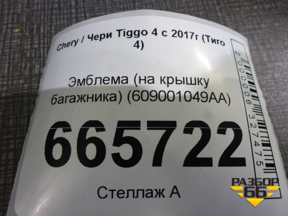 Эмблема (на крышку багажника) (609001049AA) для Chery Tiggo 4 с 2017г (Тиго 4) в Челябинске