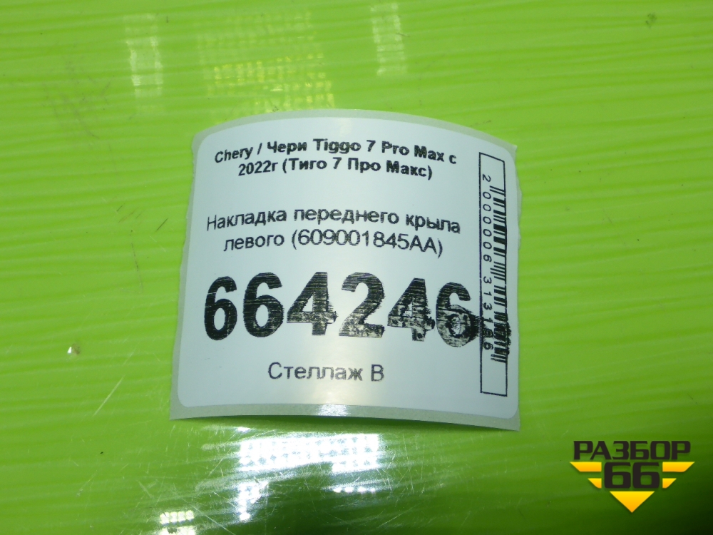 Накладка переднего крыла левого (609001845AA) для Chery Tiggo 7 Pro Max с 2022г (Тиго 7 Про Макс) в Челябинске