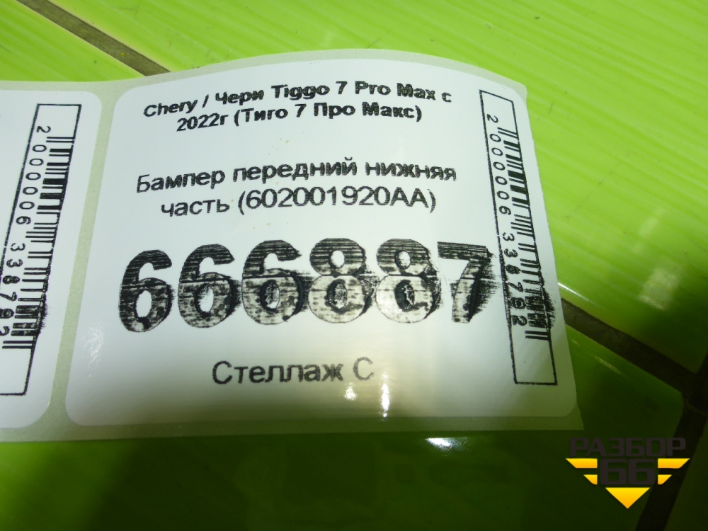Бампер передний нижняя часть (602001920AA) для Chery Tiggo 7 Pro Max с 2022г (Тиго 7 Про Макс) в Челябинске