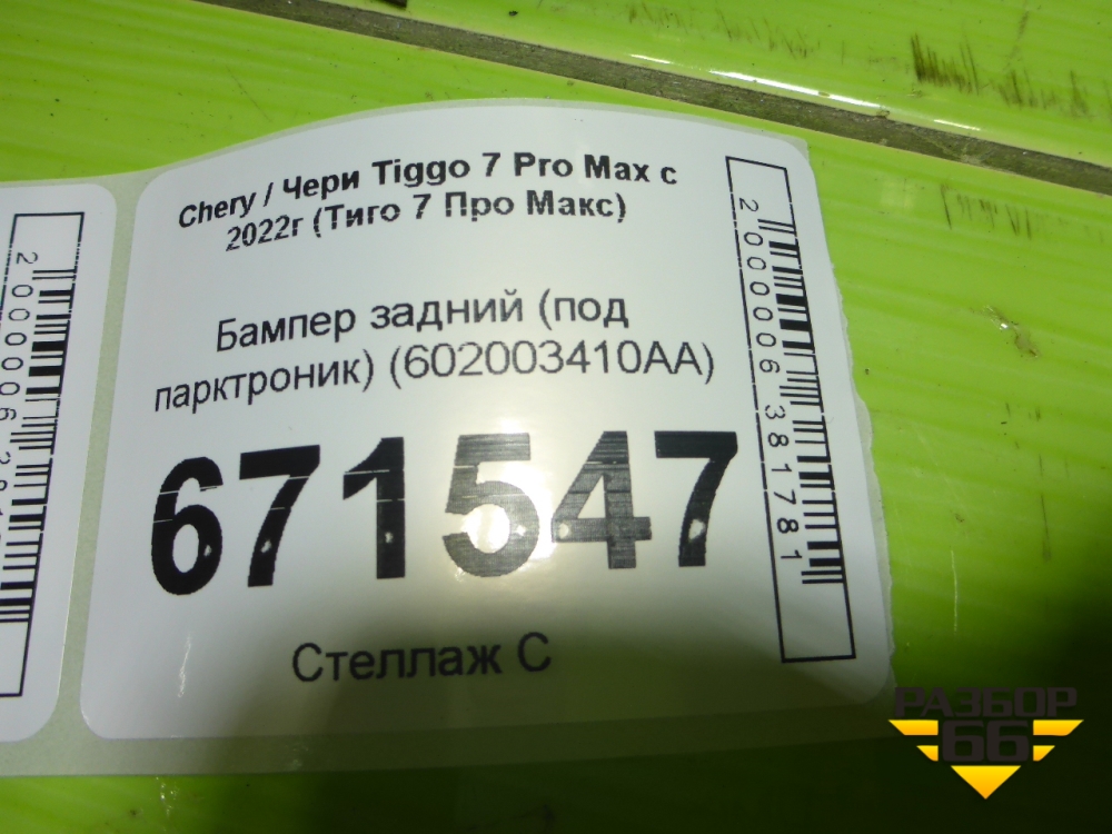 Бампер задний (под парктроник) (602003410AA) для Chery Tiggo 7 Pro Max с 2022г (Тиго 7 Про Макс) в Челябинске