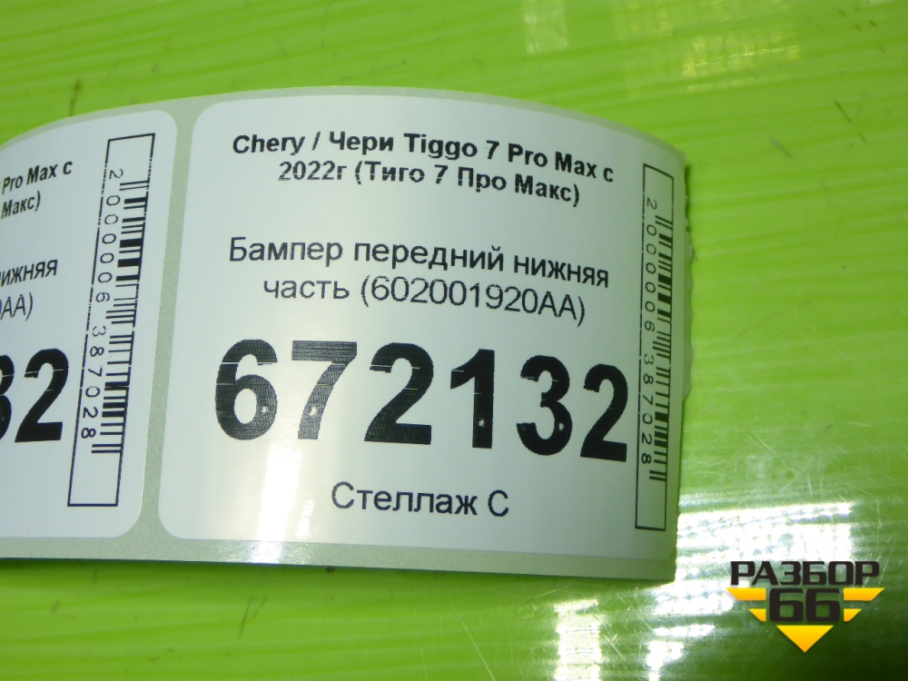 Бампер передний нижняя часть (602001920AA) для Chery Tiggo 7 Pro Max с 2022г (Тиго 7 Про Макс) в Челябинске