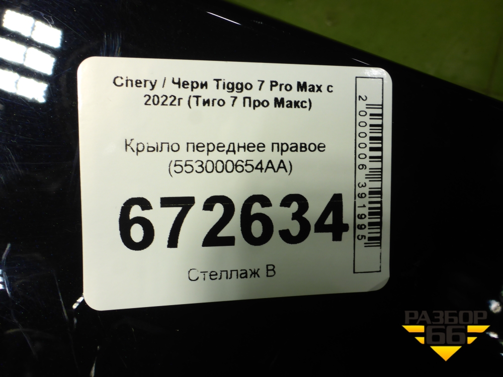 Крыло переднее правое (553000654AA) для Chery Tiggo 7 Pro Max с 2022г (Тиго 7 Про Макс) в Челябинске