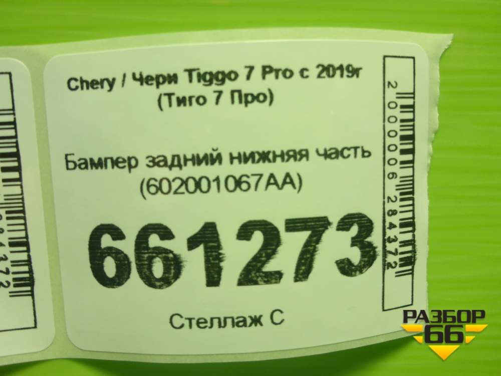 Бампер задний нижняя часть (602001067AA) для Chery Tiggo 7 Pro с 2019г (Тиго 7 Про) в Челябинске