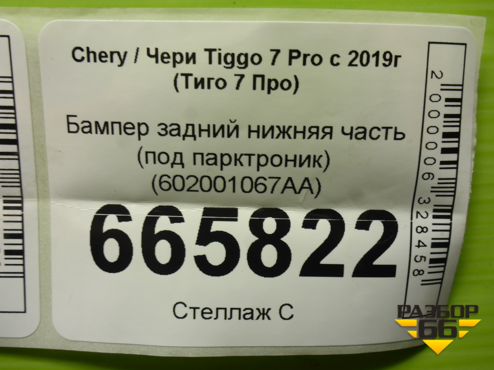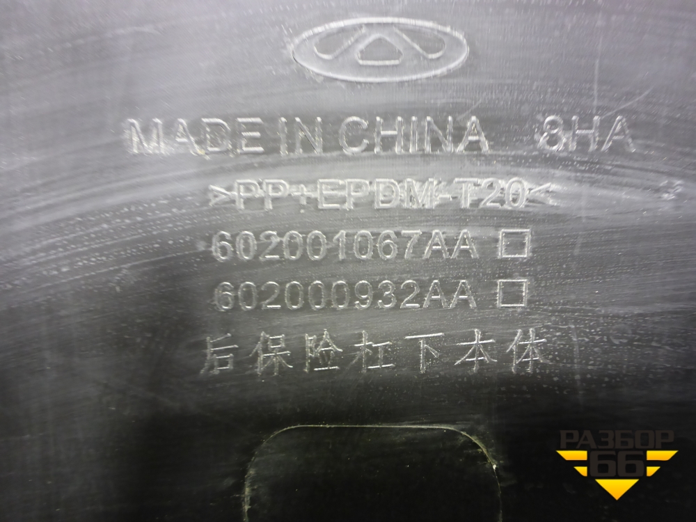 Бампер задний нижняя часть (под парктроник) (602001067AA) для Chery Tiggo 7 Pro с 2019г (Тиго 7 Про) в Челябинске