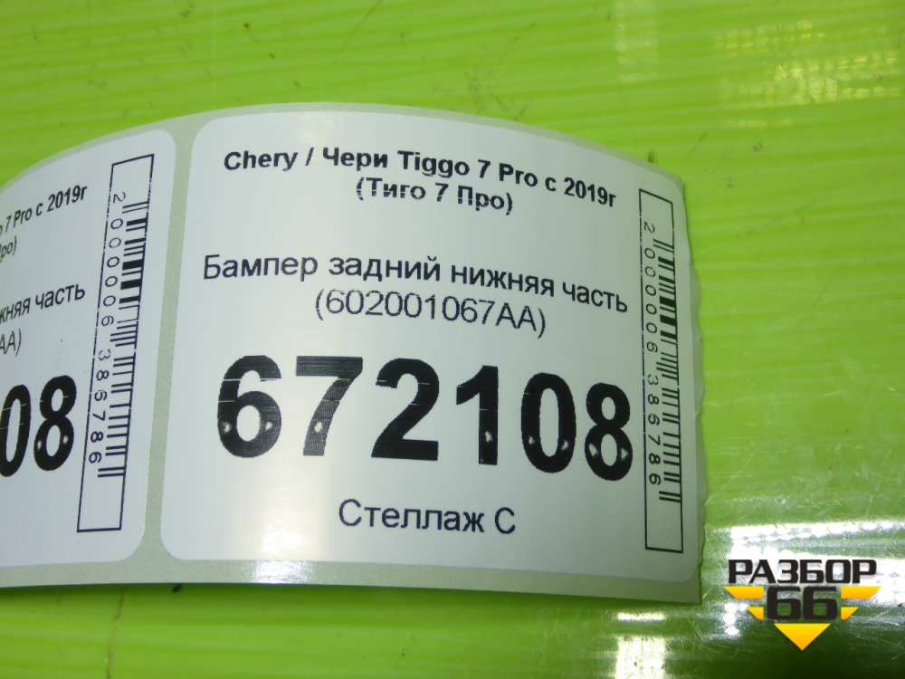 Бампер задний нижняя часть (602001067AA) для Chery Tiggo 7 Pro с 2019г (Тиго 7 Про) в Челябинске