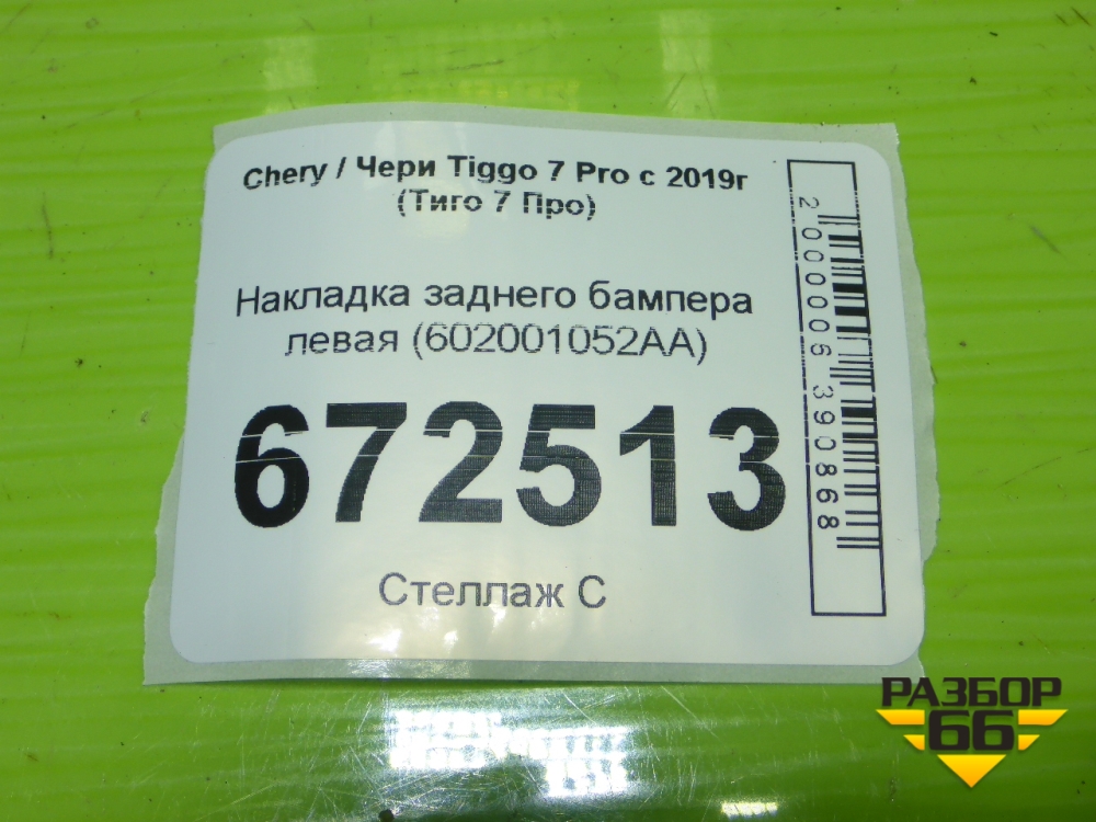 Накладка заднего бампера левая (602001052AA) для Chery Tiggo 7 Pro с 2019г (Тиго 7 Про) в Челябинске