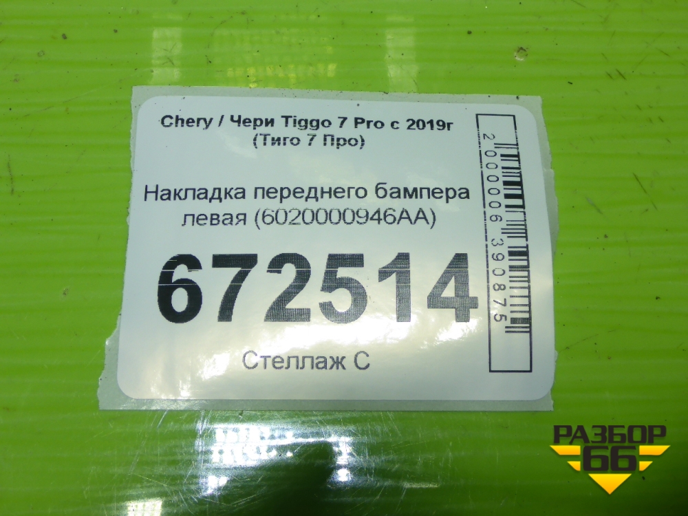 Накладка переднего бампера левая (6020000946AA) для Chery Tiggo 7 Pro с 2019г (Тиго 7 Про) в Челябинске