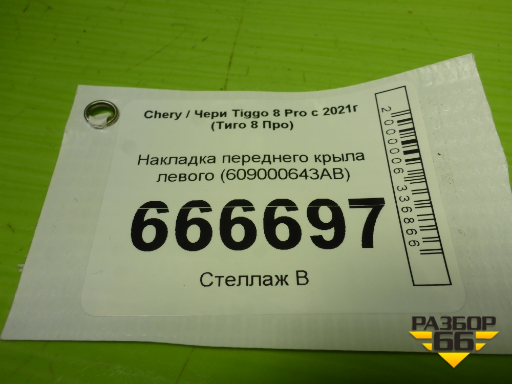Накладка переднего крыла левого (609000643AB) для Chery Tiggo 8 Pro с 2021г (Тиго 8 Про) в Челябинске