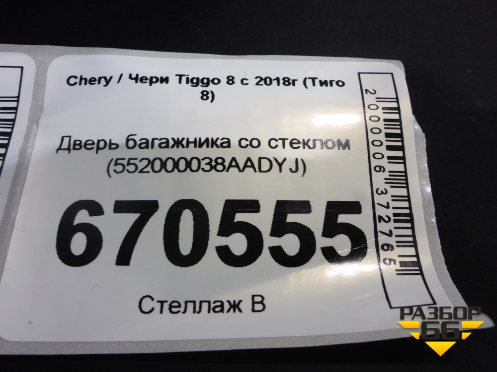 Дверь багажника со стеклом (552000038AADYJ) для Chery Tiggo 8 с 2018г (Тиго 8) в Челябинске