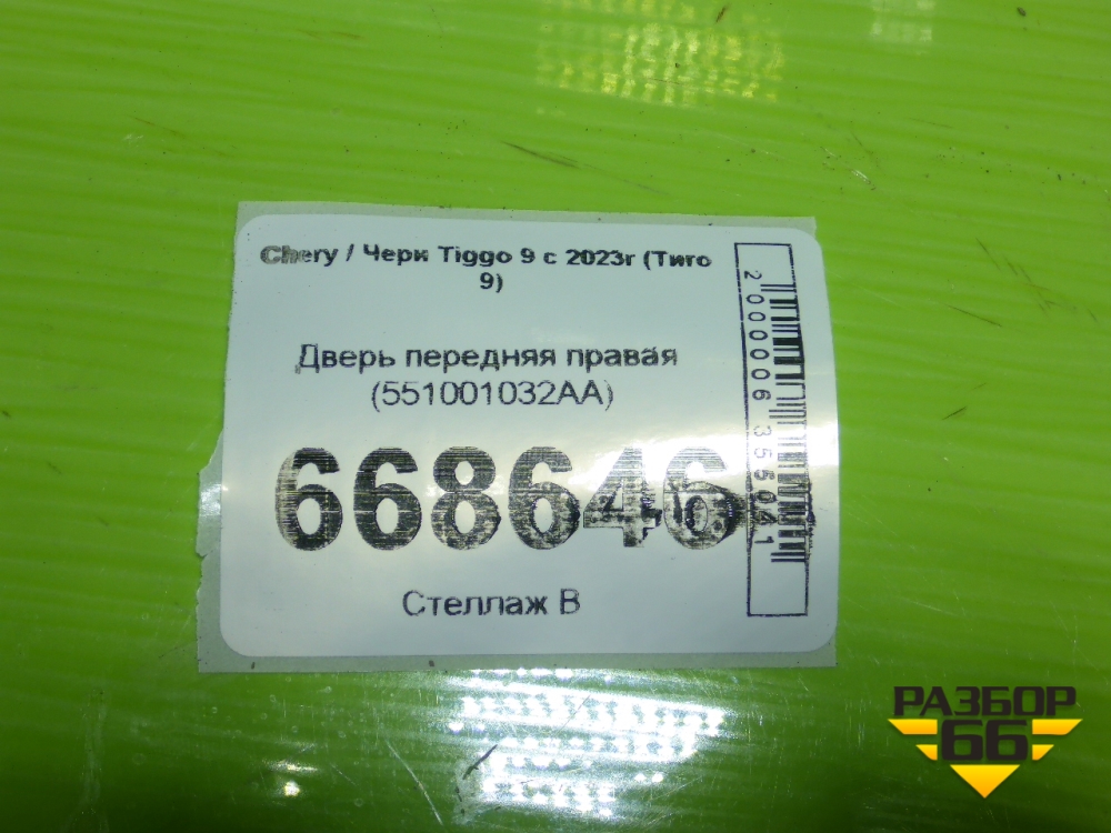 Дверь передняя правая (551001032AA) для Chery Tiggo 9 с 2023г (Тиго 9) в Челябинске