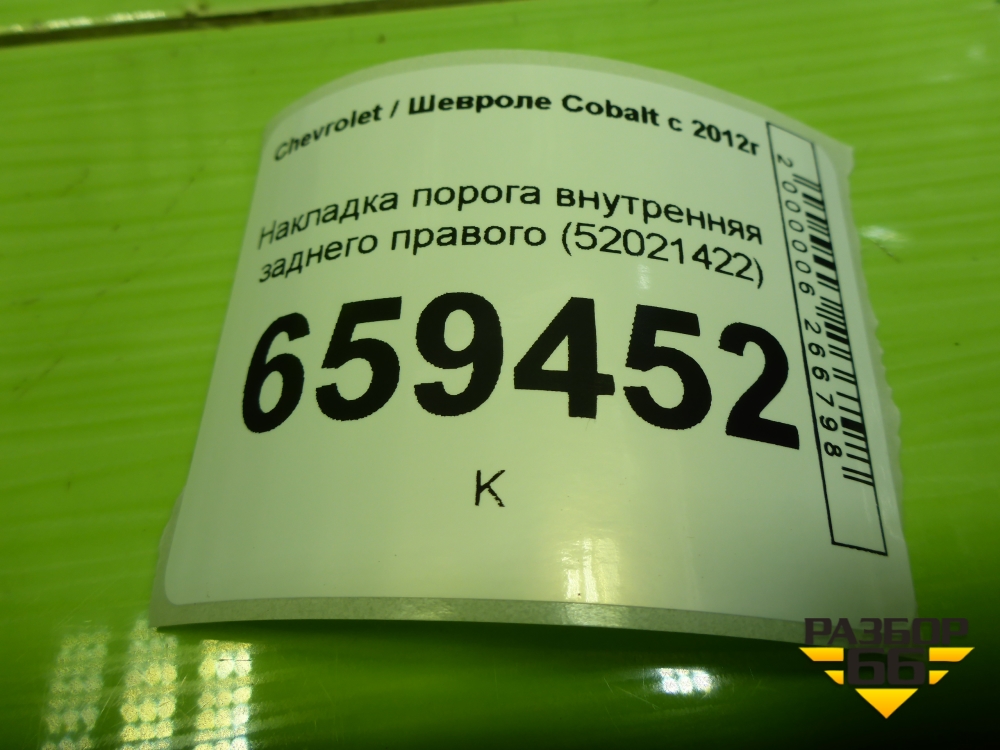 Накладка порога внутренняя заднего правого (52021422) для Chevrolet Cobalt с 2012г (Кобальт) в Челябинске