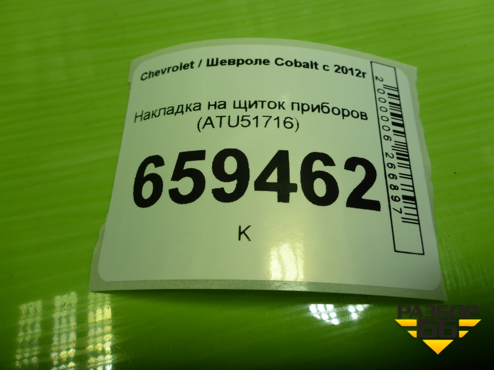 Накладка на щиток приборов (ATU51716) для Chevrolet Cobalt с 2012г (Кобальт) в Челябинске
