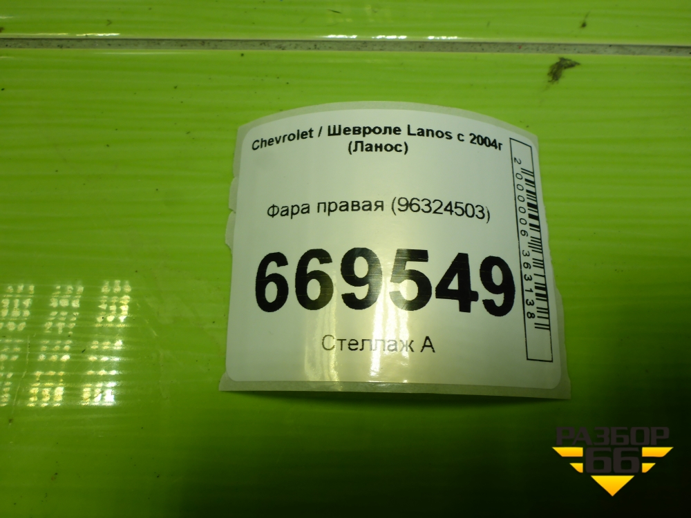 Фара правая (96324503) для Chevrolet Lanos с 2004г (Ланос) в Челябинске