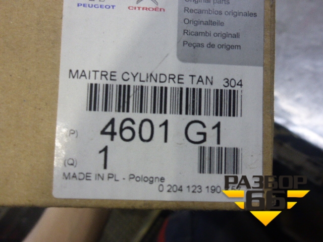 Цилиндр тормозной главный без бачка (новый) (4601G1) для Citroen Berlingo с 2002-2010г (Берлинго 1) в Челябинске